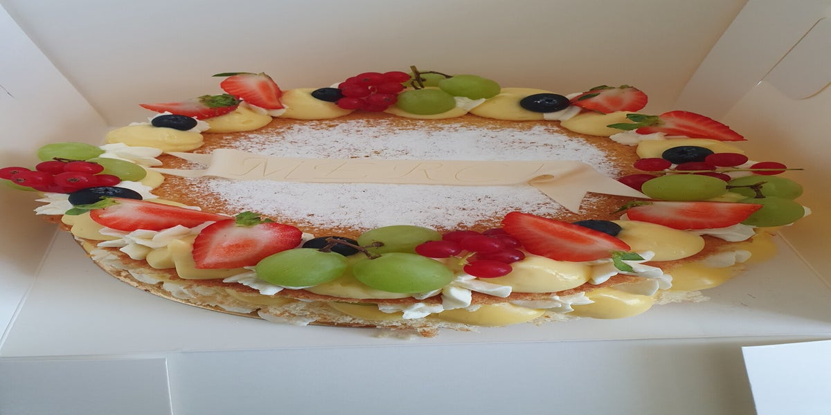 Nous vous proposons un assortiment de pâtisseries et tartes classiques: millefeuille, tarte au citron meringuée, framboisier, forêt-Noire, gâteau tutti-frutti, fraisier*...